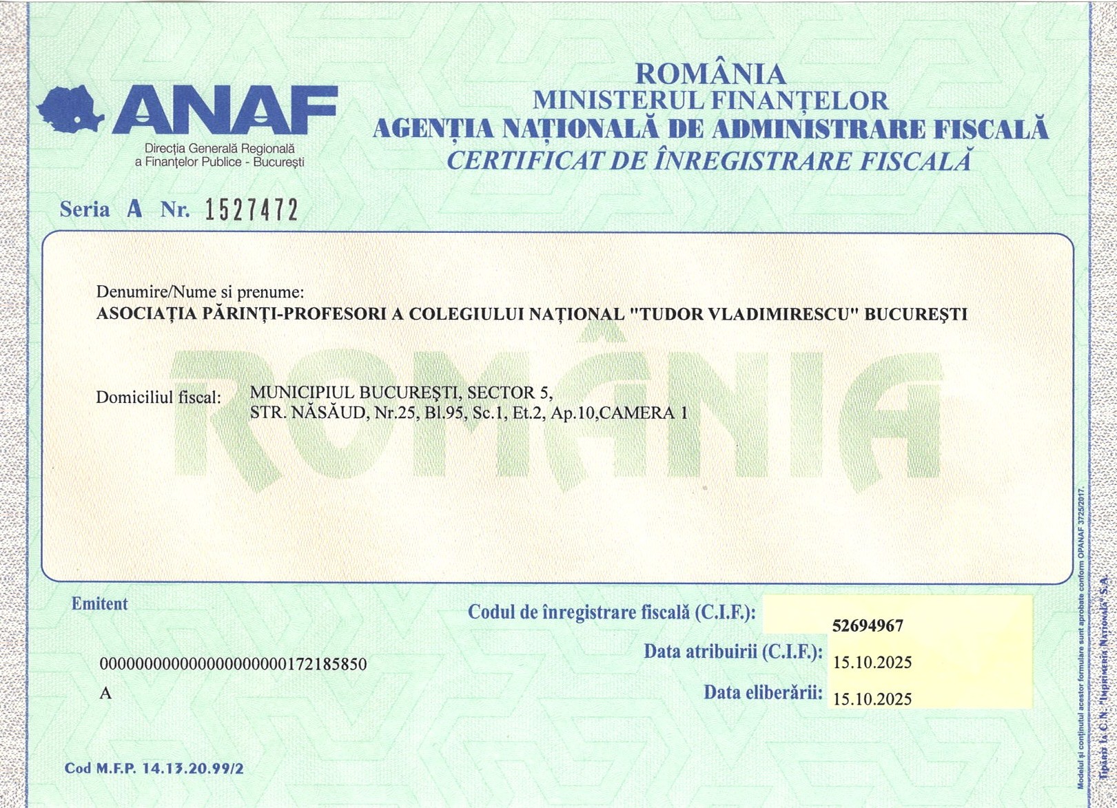 ASOCIAȚIA PĂRINȚI-PROFESORI A COLEGIULUI NAȚIONAL "TUDOR VLADIMIRESCU" BUCUREȘTI